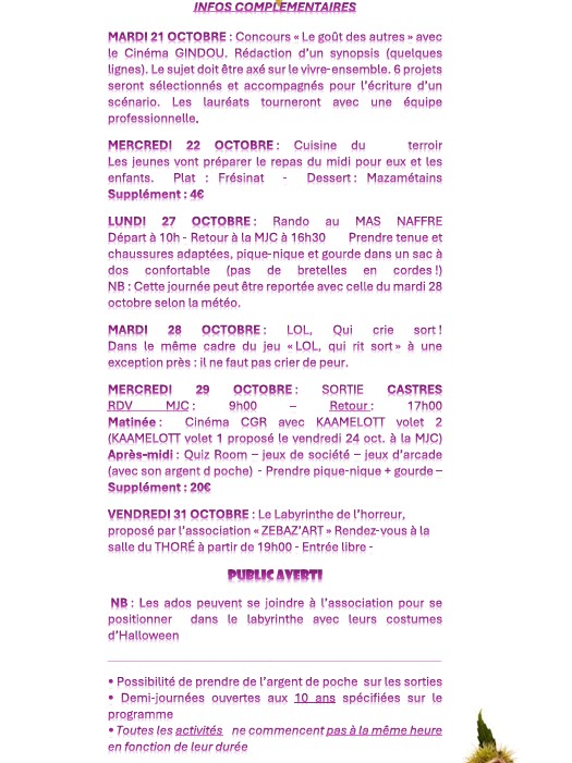 - Les mercredis 10-13 ans: Audiovisuel, projet défini avec les jeunes en septembre